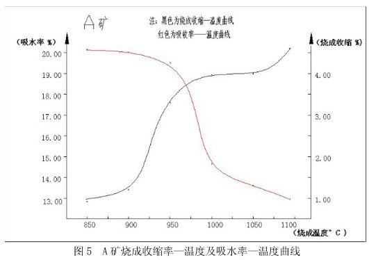 由圖 4 和圖 5 可以看出,隨著燒結溫度的升高,制品的吸水率呈下降趨勢,燒成收縮率呈上升趨勢,到達燒結溫度時,制品的吸水率與燒成收縮率都達到平穩值。 A礦在950℃~ 1000℃ 之間發生燒結,制品變的致密;B礦在1000℃~1050℃之間發生燒結,制品變的致密。一般制磚原料的燒成線收縮率控制在2一5%。由此可知,A礦和B礦原料燒成線收縮率符合制磚要求。由此可知煤矸石是可以制磚的。