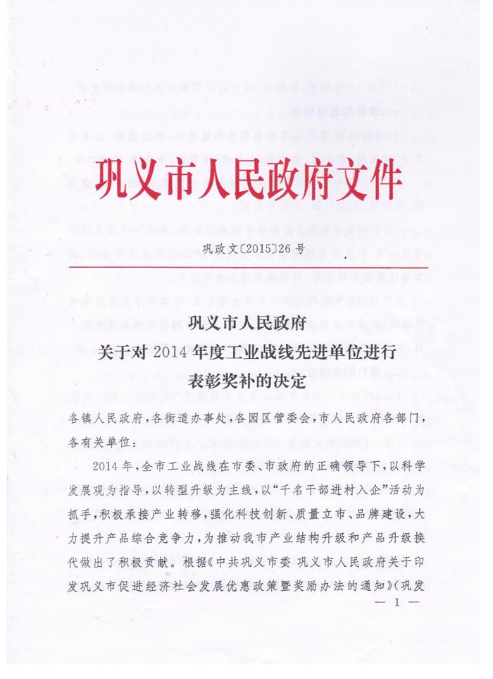 在已經過去的2014年度,全市工業戰線在市委、市政府的正確領導下,以科學發展觀為指導,以轉型升級為主線,以“千名干部進村入企”活動為抓手,積極承接產業轉移,強化科技創新、質量立市、品牌建設,大力提升產品綜合競爭力,為推動我市產業結構升級和產品升級換代做出了積極貢獻。根據《中共鞏義市委鞏義市人民政府關于印發鞏義市促進經濟社會發展優惠政策暨獎勵辦法的通知》(鞏義[2011]8號)文件精神,經研究,決定對一些先進單位進行表彰和獎補。