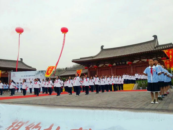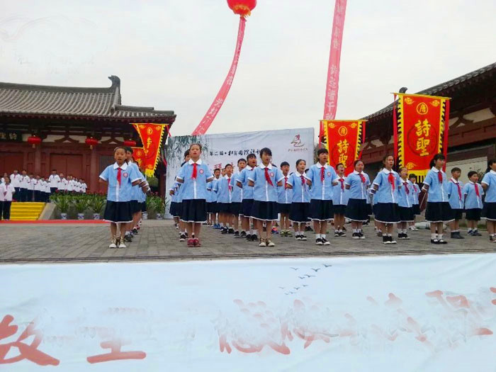 小學生在活動現(xiàn)場進行表演。當日,第二屆杜甫國際詩歌節(jié)在河南鞏義舉行。近百名中小學生集體朗誦杜甫詩歌,表達對“詩圣”的緬懷敬仰。