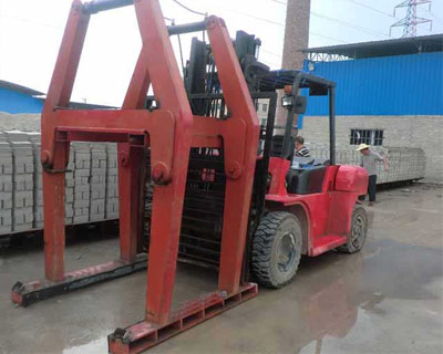 我公司生產的抱磚機裝在叉車前面,根據每次裝卸磚的重量選擇適當的噸位。該機具有操作簡單,故障率極低,效率高,性能穩定等特點。我們提供全套設備和售后服務,如果您有叉車我們免費提供改裝抱磚機的服務。